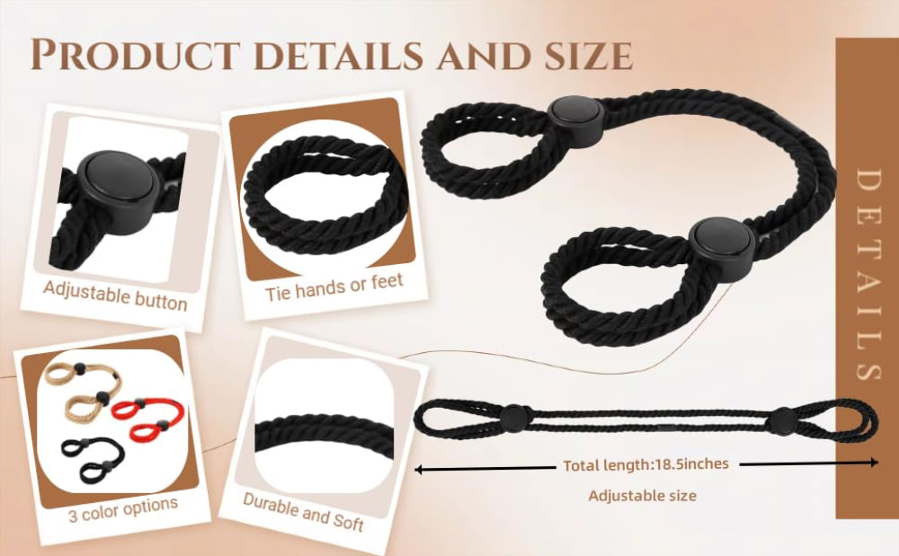 As Algemas de Corda Sexual são perfeitas para quem deseja explorar fantasias, jogos de poder e experiências de RPG BDSM com mais intensidade 🖤🔥. Ideais para amarrar mãos, pés ou ambos, elas aumentam a conexão, a entrega e a paixão nos momentos íntimos 😈✨