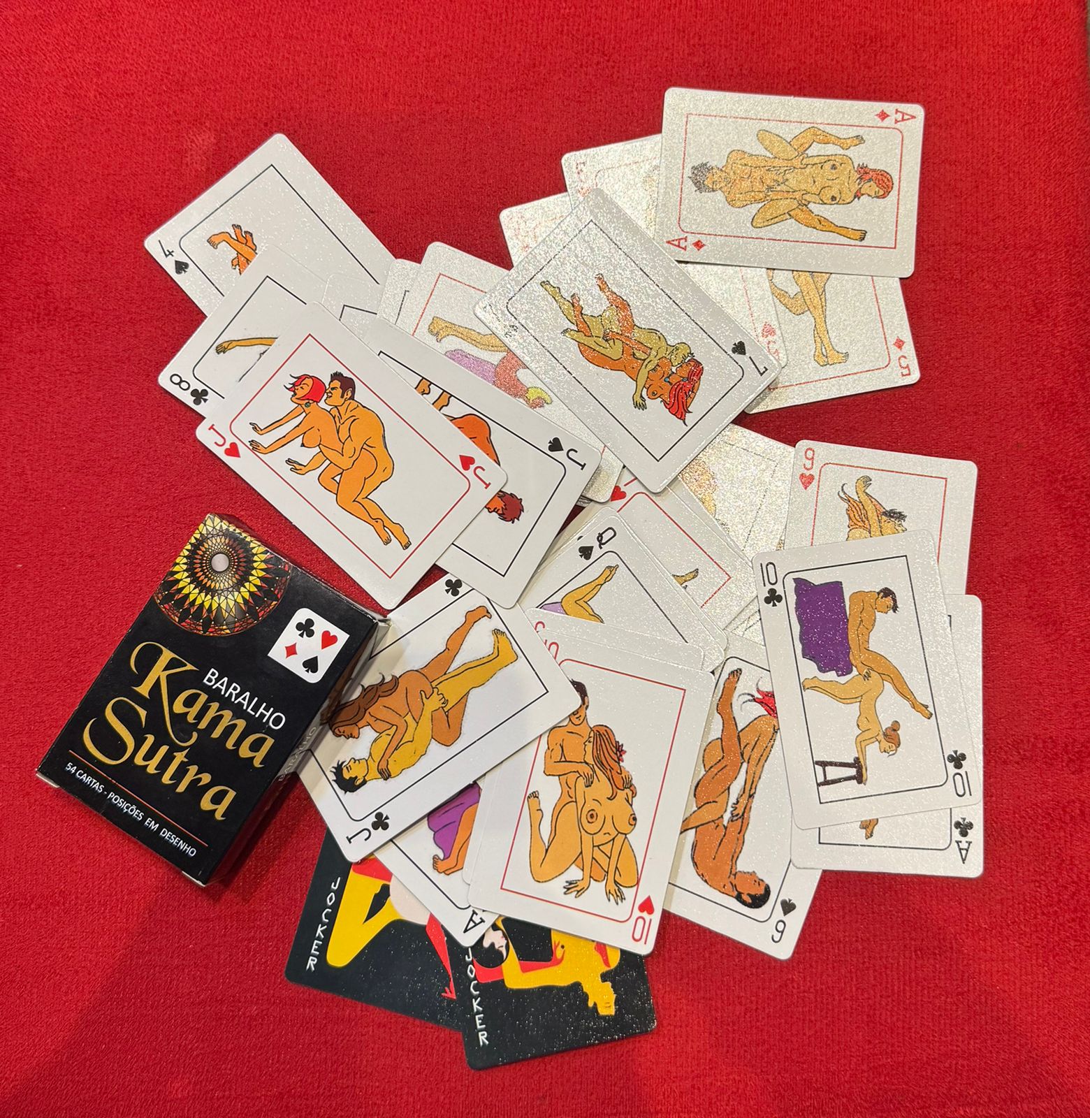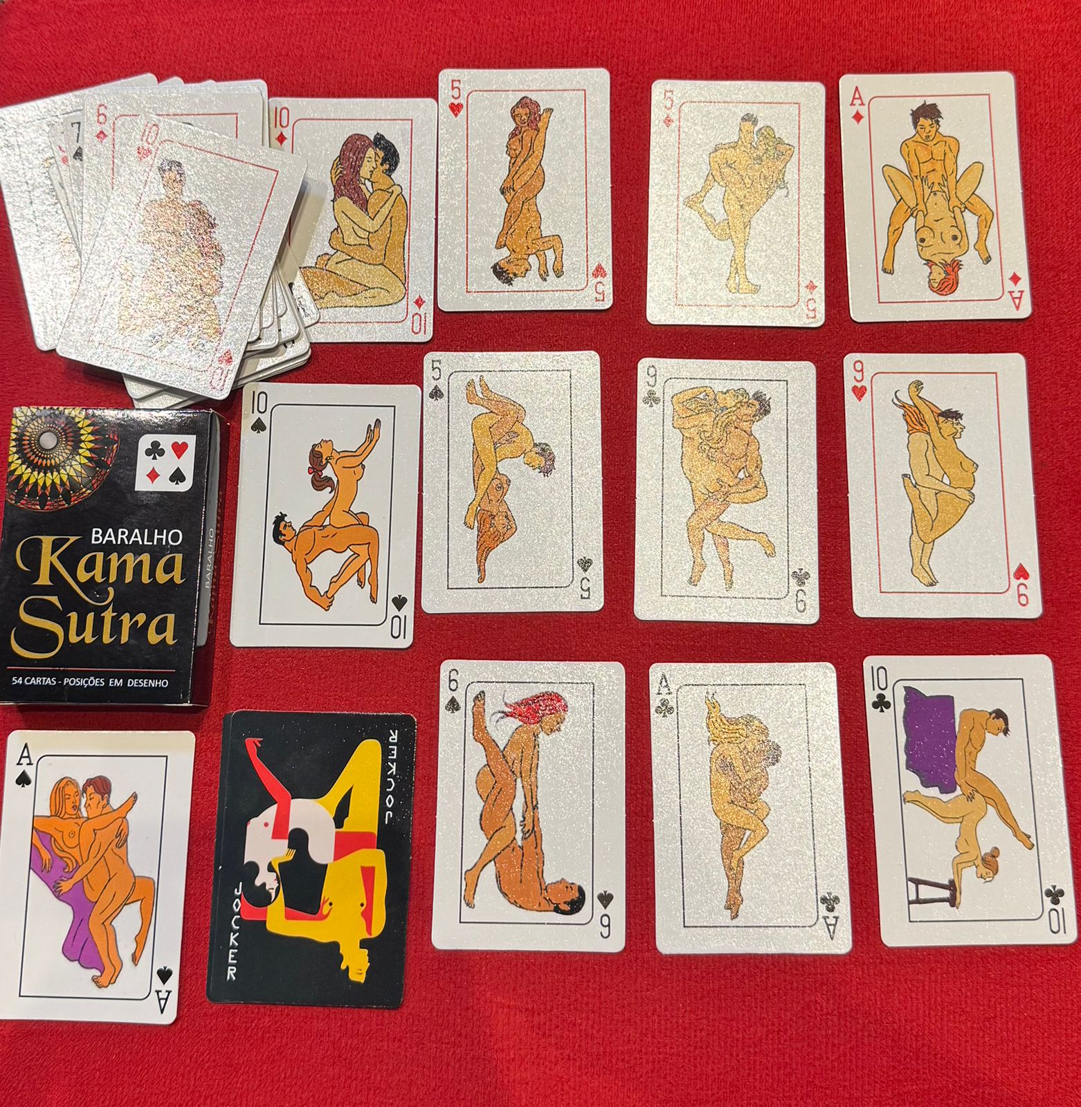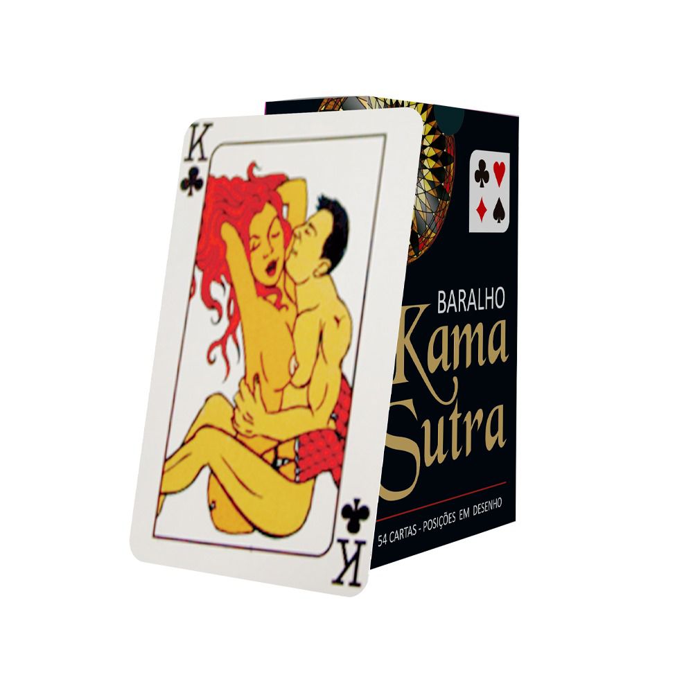 O BARALHO KAMA SUTRA é formado de 54 cartas e composto com mais de 35 imagens de metódos clássicos para os aventureiros de hoje, que desejam otimizar a relação sexual, dar durabilidade ao relacionamento ou simplesmente compartilhar laços de amor.