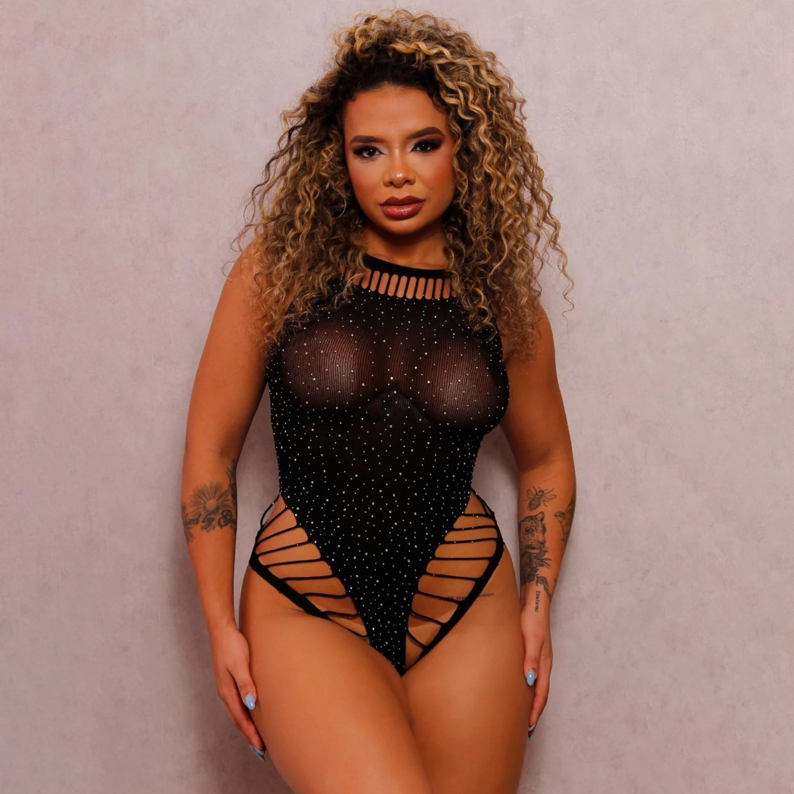 Body Arrastão Sexy Scarlet Com Strass Liang L-2279