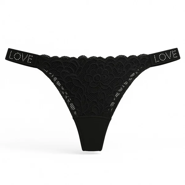 O modelo possui cintura baixa e reta com tiras laterais médias e uma linda aplicação com brilho com a palavra ✨LOVE✨ que dão um charme especial a peça. O modelo é fio dental e conta com renda com transparência na parte frontal, sendo lisa na parte de trás. A calcinha é ideal tanto para o dia a dia quanto para ocasiões especiais, unindo funcionalidade e sensualidade.