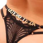 Esse modelo de calcinha foi desenvolvido para você personalizar com nomes e frases picantes e bem ousadas para acender as chamas do tesão. Você pode colocar o nome do boy, o nome da gata ou um nome mais ousado. Calcinha fio dental com personalização em letras. (letras vendidas separadamente) Peãa sexy, para mulheres poderosas! Calcinha fio dental com detalhes em letras nas costas. Pingentes recebem banho de níquel para evitar alergias. A peãa é bem elástica e possuí alãas reguláveis. Modela e contorna super bem o corpo em um tecido muito resistente. Lingerie super trabalhada e muito sexy para momentos especiais. Você vai se surpreender! Composião: 90% Poliamida 10% Elastano. Forro: 100% algodão. Acompanha: 01 calcinha fio dental. (letras vendidas separadamente) Recomendações de lavagem: Lavar a Mão; Usar sabão neutro; Secar na sombra.