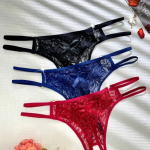 Calcinha de renda com abertura estratégica.