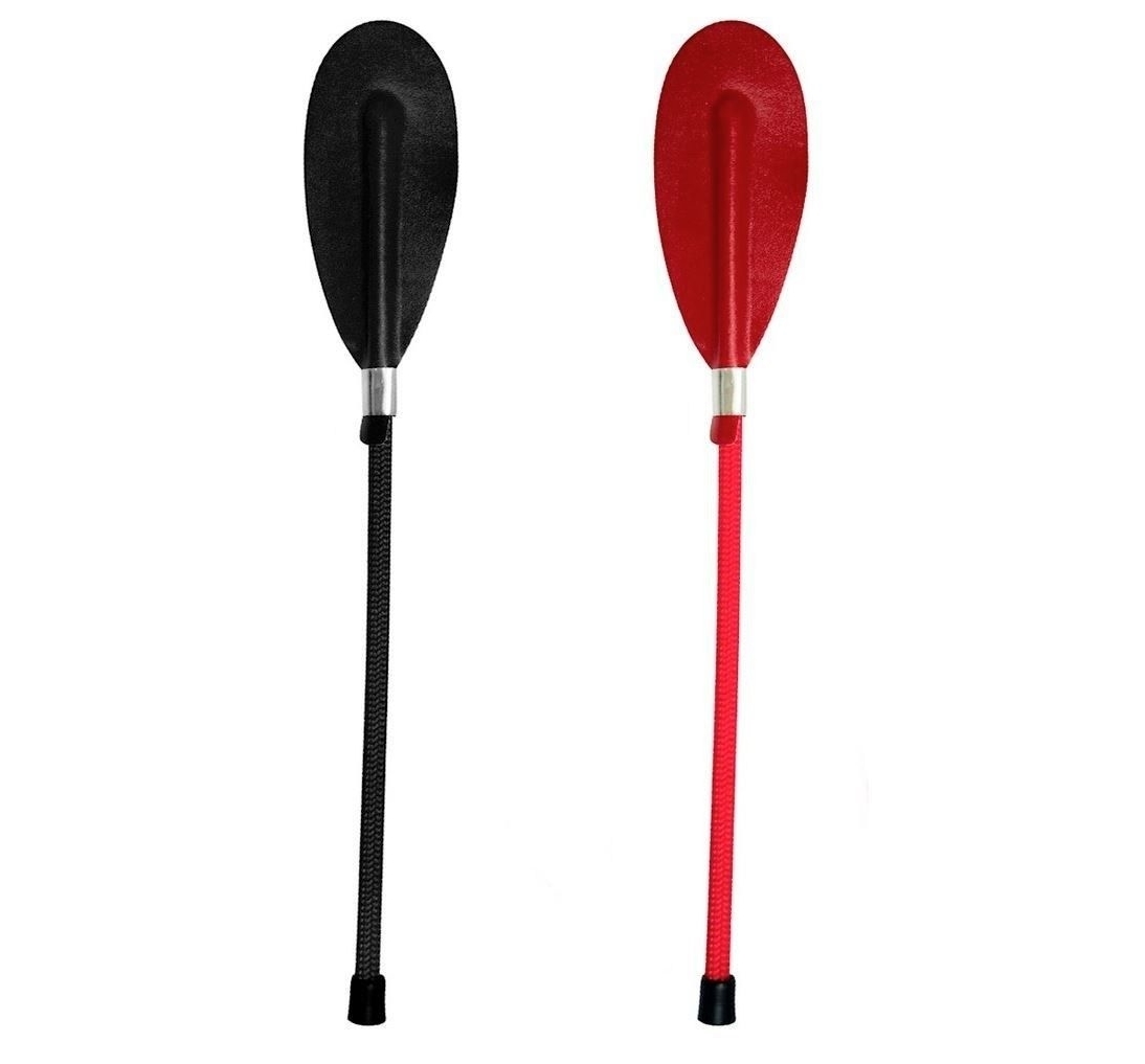 Chibata com base em plástico revestida de nylon liso e ponta formato oval de couro sintético. Dimens├Áes: Base em plástico revestida mede 25cm, ponta oval mede 12 x 5,5cm (medidas aproximadas)