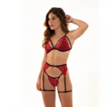 Apresentação: Confeccionada em renda jacatronica e tule importados. Conjunto com cinta liga todo de renda proporcionado extremo conforto e sutiÚ sem bojo forrado. Destaque para para o corte da renda.Modelagem moderna que vai realãar ainda mais a sua sensualidade e fará você se sentir atraente e confortável. Disponível nas cores: Preto e vermelho com aviamentos preto. Tamanho: P, M, G e GG Composto por: Conjunto com tanga, sutiÚ, cinta liga e persex. Forro: 100% algodão. Composião tecido: 90% poliamida e 10% elastano. Tabela de Medidas: (P = 36 – 38) – Busto: (82-86) / Cintura = (66 – 70) / Quadril = (88 – 92) (M = 40 – 42) – Busto: (90-94) / Cintura = (74 – 78) / Quadril = (96 – 100) (G = 44 – 46) – Busto: (98-102) / Cintura = (82 – 86) / Quadril = (104 – 108) (GG = 48 – 50) – Busto: (106-110) / Cintura = (90 – 94) / Quadril = (112 – 116) Cuidados: Lavar à Mão, não utilizar ferro e alvejante.