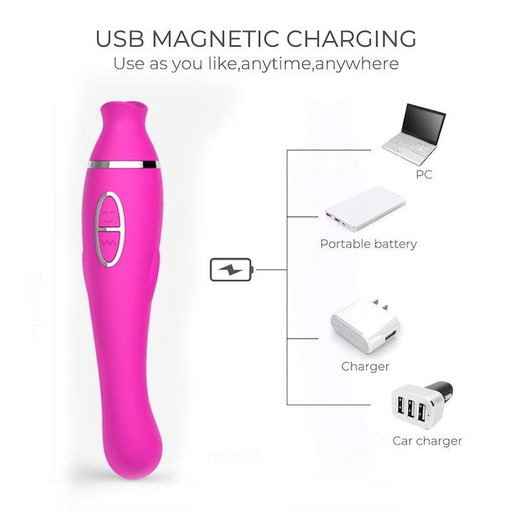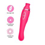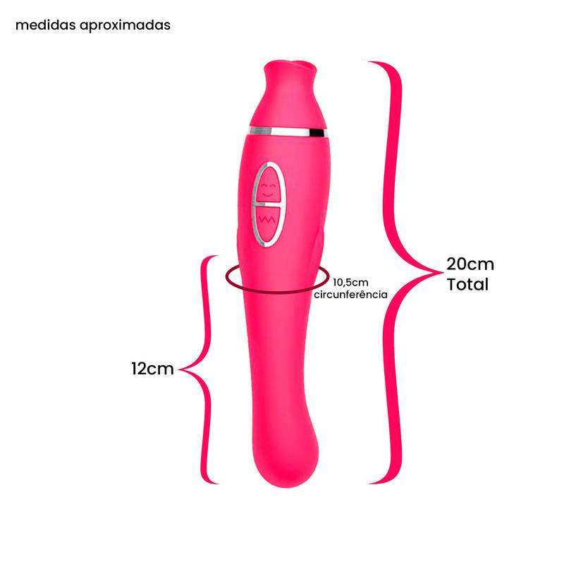 Estimulador multifuncional com tecnologia de sucção, esse vibrador proporciona prazer intenso na estimulação clitoriana simulando um delicioso sexo oral e na ponta que penetra estimula o ponto G e a próstata do homem.