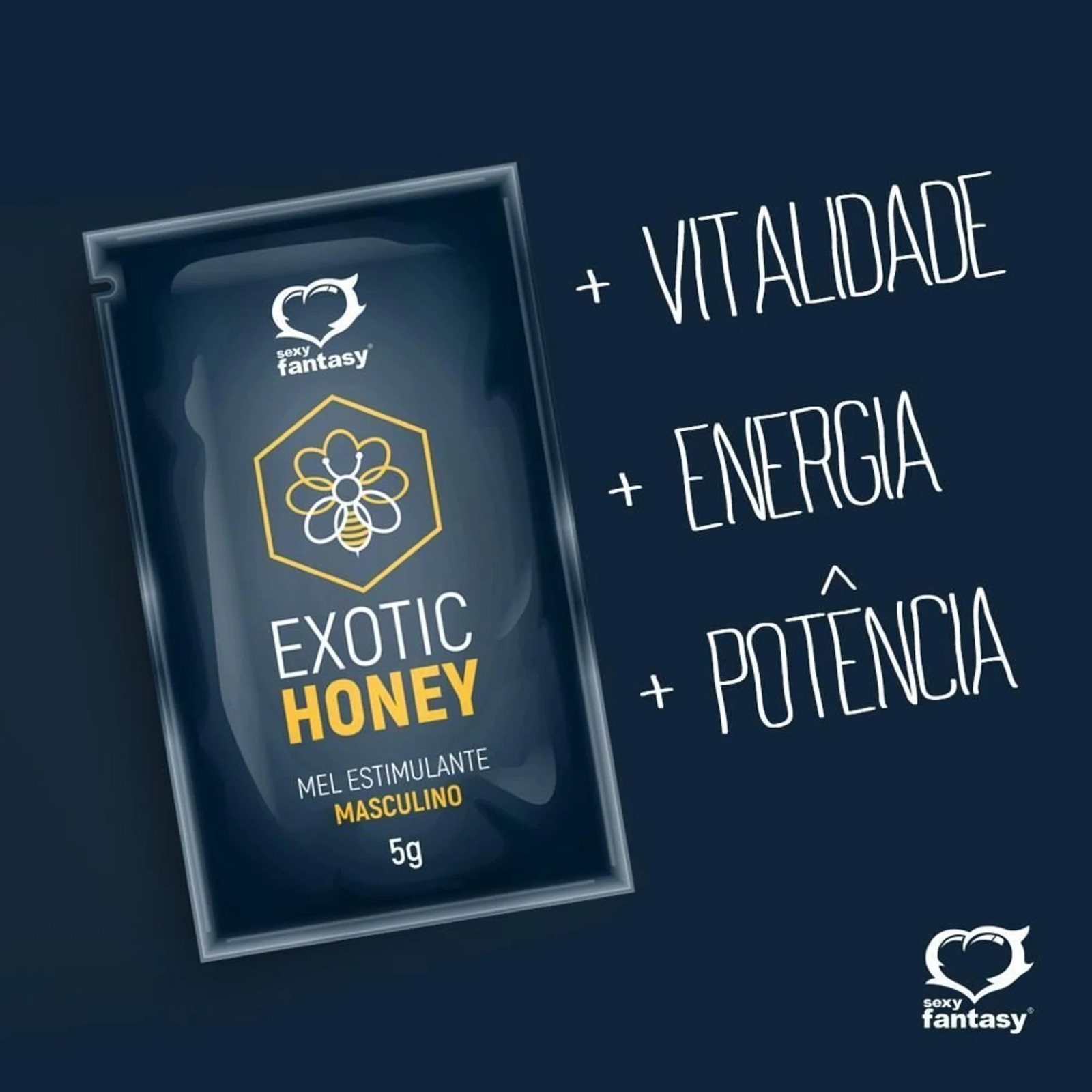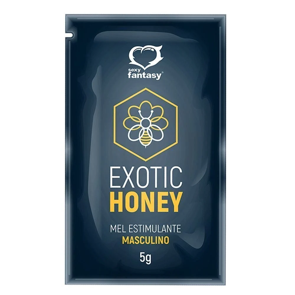 Potência e vitalidade para garantir momentos incríveis!! O ÔÇ£Exotic Honey” da Sexy fantasy, feito especialmente para vocês homens que buscam uma potência e energia maior, esse mel é garantia de muito mais prazer. Ele irá deixar pegando fogo, além de fazer as coisas durarem muito mais. Sua excitação nunca foi tão intensa e duradoura quanto será usando esse maravilhoso melzinho. É um super estimulante à base de mel e extratos naturais, aumentando seu desejo e prolongando ainda mais o tesão entre você e seu parceiro(a), elevando o período da ereão e da libido. Além de ajudar o corpo, deixa a sensação de vitalidade e energia, você muito mais disposta(o) para curtir aquele momento prazeroso. Contém: 5g Moda de Uso: Abra embalagem e beba em uma única dose, o liquido pode ser ingerido quente ou gelado, fica ão seu critério. Aguarde uns minutos e depois só aproveitar dos prazeres da vida intensificados. Composião: Mel, Extrato de Long Jack, Cafeína, Extrato de Maca Peruana, Extrato Glicólico de Gengibre, Extrato Glicólico de Marapuama, Extrato Glicólico de Ginko Biloba, Jambu. NÃO CONTÉM GLÜTEN. NÃO CONTÉM LACTOSE. Precauões: mantenha fora do alcance das crianças, guardar em locais frescos e sem temperaturas altas. Se você tiver alergia a algum componente da fórmula não usar o produto. Não pode haver contato com os olhos, caso ocorra lavar imediatamente com água abundante. Em pele lesionada, inflamada ou irritada não passar o produto. Caso ocorra irritação suspenda o uso imediatamente e procure uma orientação médica