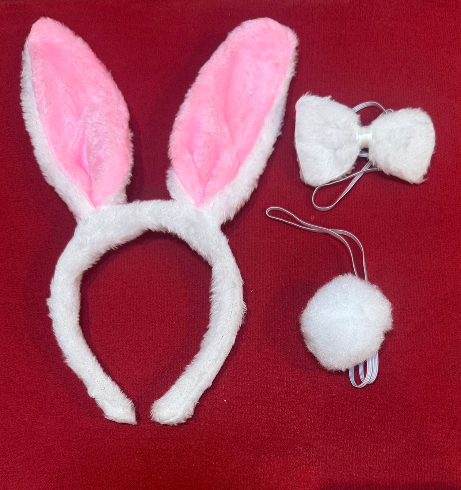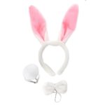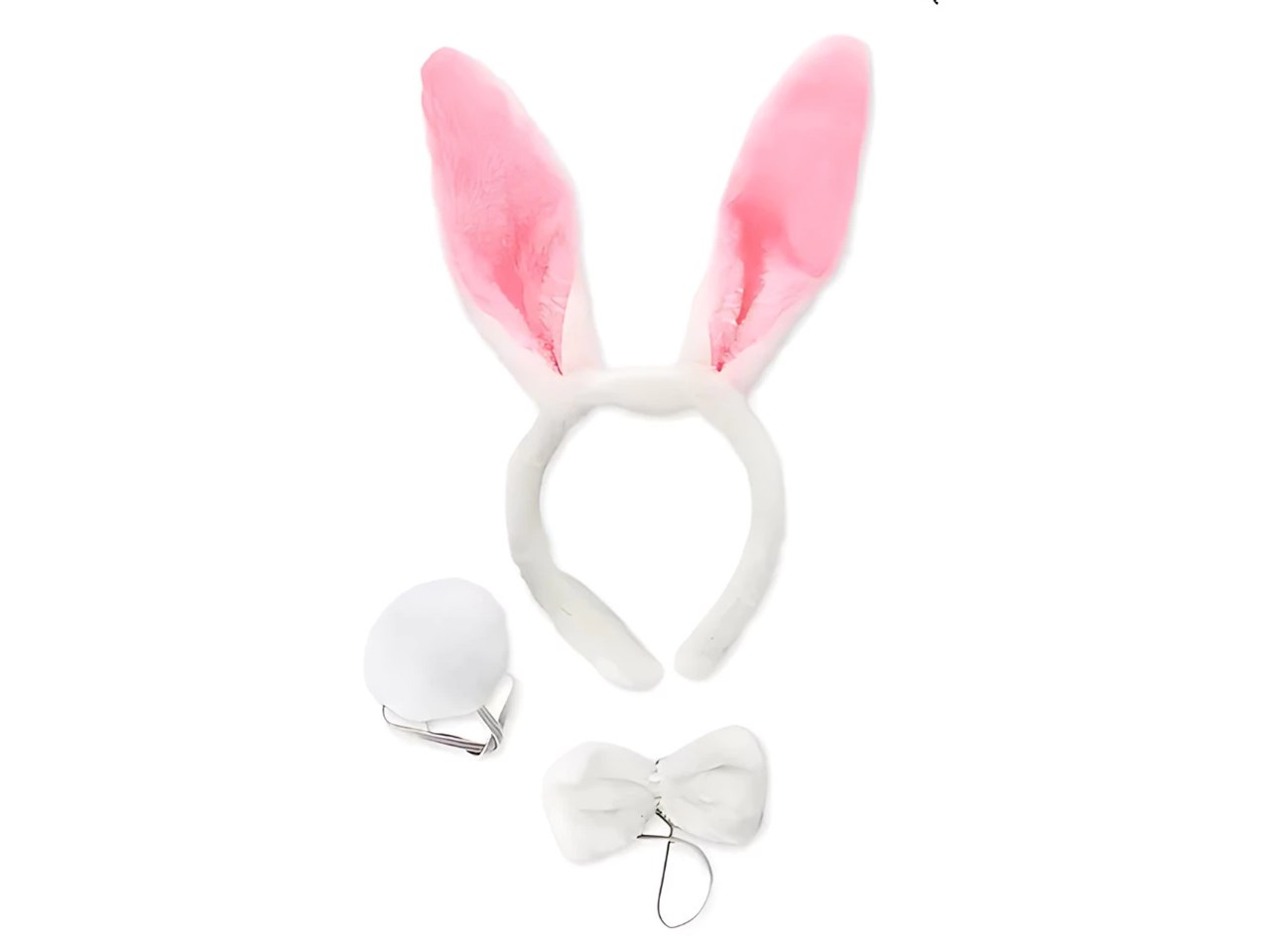 Kit Coelhinha Branca em Pelúcia Com Tiara de Orelha Pompom e Gravata)
