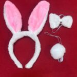 Kit Coelhinha com 3 peãas: Tiara de orelha, Pompom e Gravata