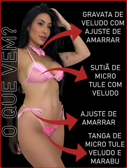 Composto por: Tanga com marabu, sutiã e gravatinha.