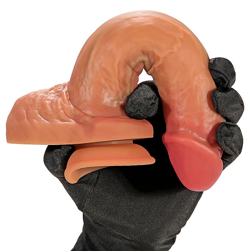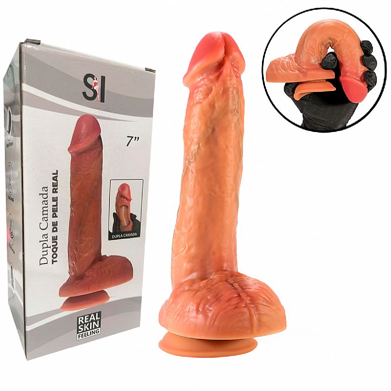 Prótese realística em formato de pênis, confeccionado em Abs, possui glande definida,