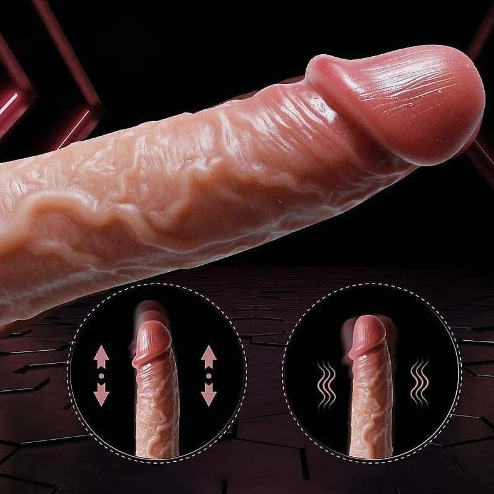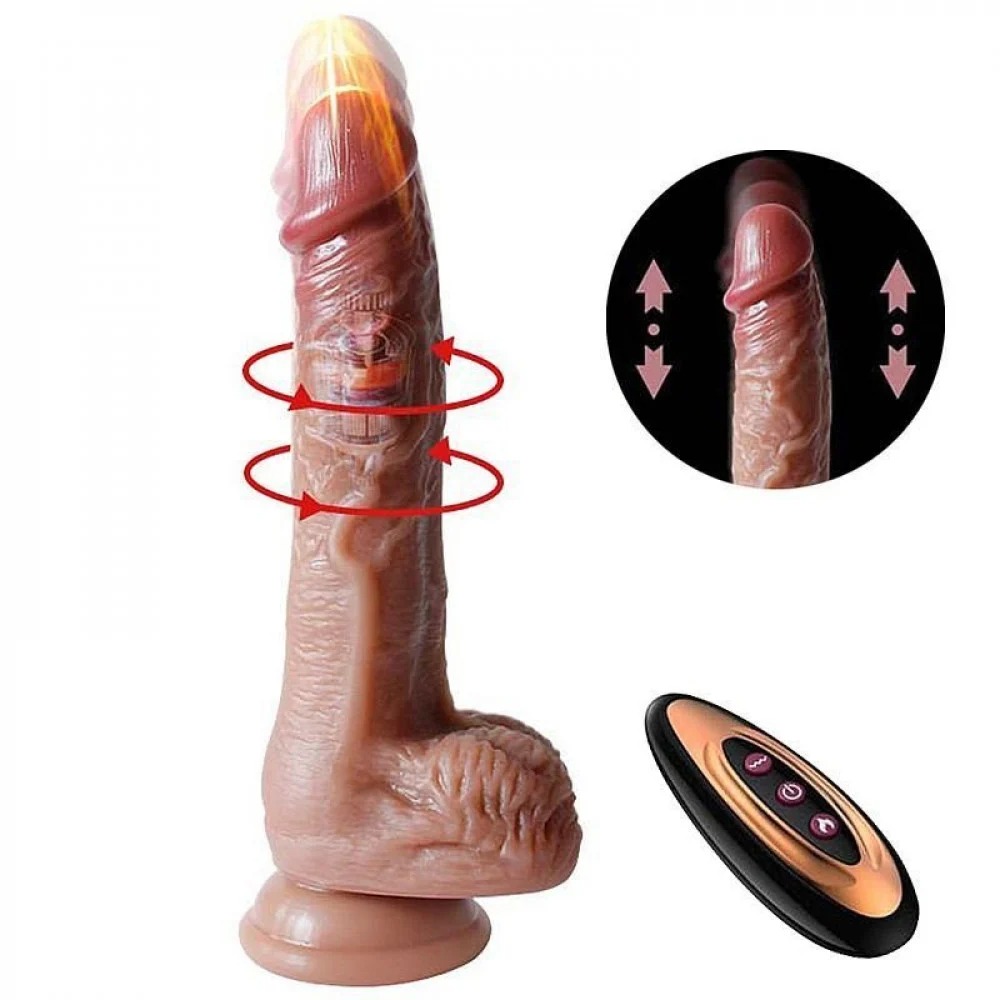 PÊNIS REALÍSTICO VAI E VEM ROTATIVO E AQUECIMENTO 9 MODOS 20,5X3,8CM