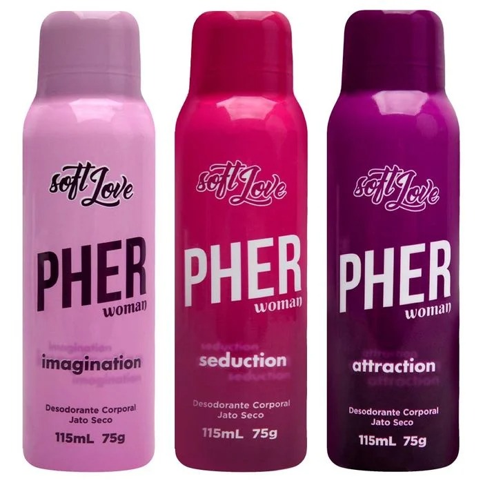 Pher Perfume Aerossol Feromônio 115ml – Soft Love. Atração e seduão com o poder dos feromônios. O Pher Perfume Aerossol Feromônio 115ml da Soft Love é o primeiro desodorante spray jato seco com feromônio do Brasil, desenvolvido para estimular a atração e despertar o desejo. Sua fórmula exclusiva contém feromônios que intensificam o magnetismo natural, tornando-o altamente atrativo para o sexo oposto. Com um aroma sofisticado e envolvente, esse perfume aerossol oferece fixação prolongada e aplicação prática, garantindo uma experiência sensorial marcante. Benefícios do Pher Perfume Aerossol Feromônio Aumenta o poder de atração, estimulando a libido Desodorante aerossol jato seco, secagem rápida e confortável Perfume marcante e sedutor, ideal para qualquer ocasião Fácil aplicação, com fixação prolongada Pode ser usado no dia a dia ou em momentos especiais Como usar Agite bem antes de usar Aplique a uma distância de aproximadamente 15cm da pele Borrife nos pulsos, pescoão e atrás das orelhas para melhor fixação Use sempre que desejar intensificar seu magnetismo e atrair olhares Precauões Produto inflamável, não pulverizar perto de fogo ou fontes de calor Evite contato com os olhos e não aplique em pele irritada Em caso de irritação, suspenda o uso Uso externo. Manter fora do alcance das crianças Indicado para Quem deseja intensificar a atração e magnetismo pessoal Pessoas que buscam um perfume aerossol diferenciado com feromônio Quem quer um aroma envolvente e sedutor para o dia a dia ou ocasiões especiais Desperte o desejo e potencialize sua seduão com o Pher Perfume Aerossol Feromônio da Soft Love!