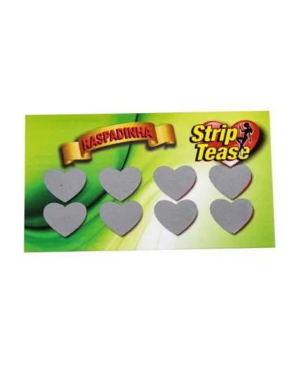 A raspadinha stripe tease vem pra deixar a sua maneira de se despir ainda mais excitante e divertida. Modo de jogar: Raspe e realize o que foi sugerido, quantas vezes quiser.