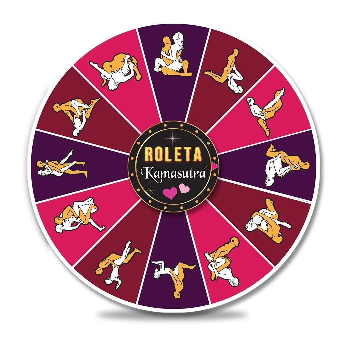 Roleta Kamasutra para casais que gostam de se divertir e sair da rotina na hora do sexo, não serve apenas para a reconquista, se você está em busca de esquentar a relação e não sabe por onde comeãar, que tal iniciar por uma brincadeira nada inocente? É só rodar a roleta e realizar as diversas posiões eróticas! Contém: 01 roleta