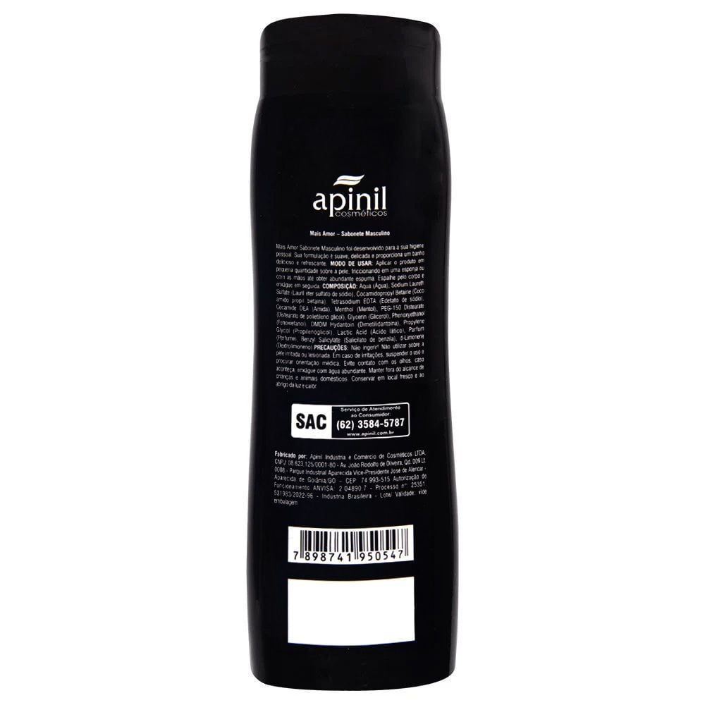 Com o Sabonete Líquido Masculino 200ml Apinil, você transforma seu banho em um momento de revitalização, frescor e elegância. Um cuidado diário que revela a confiança de quem sabe se destacar com